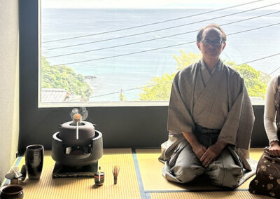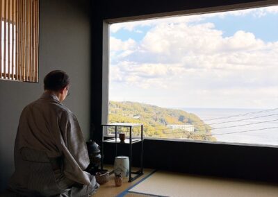 Welcome to a journey into the heart of Japanese culture and mindfulness. This tour offers you a chance to appreciate Thick Tea (Koicha) with confectionery (Wagashi) in the traditional tea room, Thin Tea (Usucha) in the newly constructed “Floating Tea Room” overlooking the breathtaking ocean view of Manazuru, and make your own tea under the guidance of the tea master.