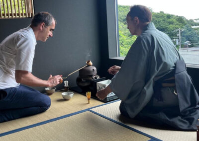 In the second phase of his life, spanning over a decade, he has dedicated himself to the world of Japanese Tea Ceremony. His inspiration for embarking on this journey was a deep-seated desire to introduce the pinnacle of Japanese cultural art, known as Sado or the way of tea, to international audiences with the utmost authenticity.